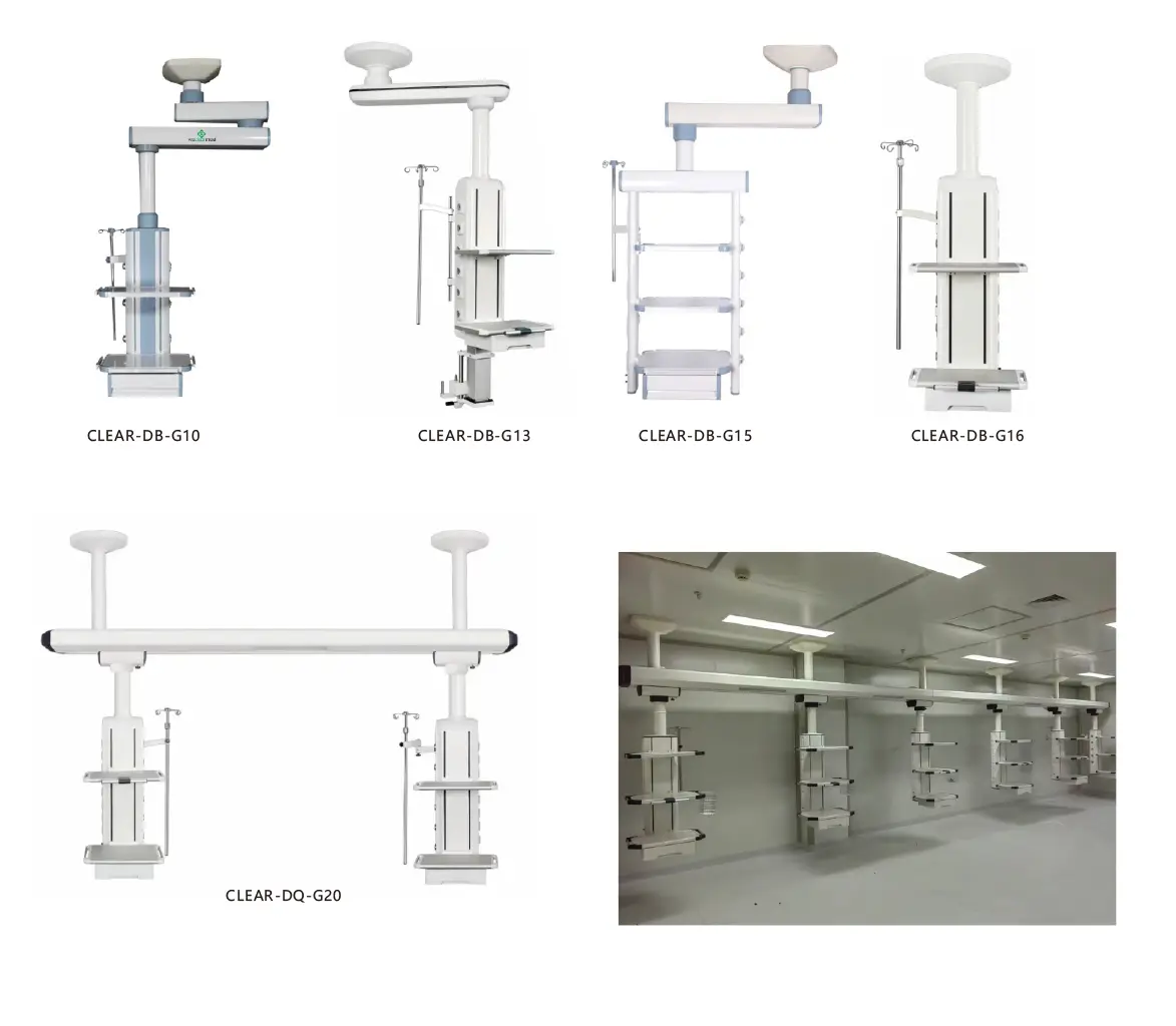 1. Seri Clear-DB-G10 bisa muter 350 derajat ing diameter tartamtu, munggah lan mudhun munggah nganti 390mm, miturut syarat staf medis, gampang obah lan ngunci posisi pendant.