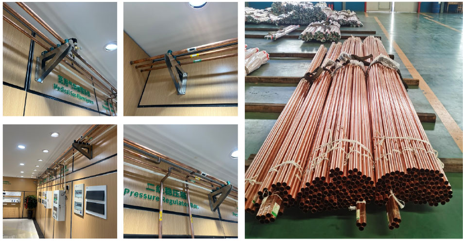 Standar domestik: spesifikasi teknis kanggo teknik medis kanggo teknik gas medis "kanthi jelas mbutuhake panggunaan pipa tembaga (ketebalan tembok ≥1.5mm) kanggo oksigen utama pipo.